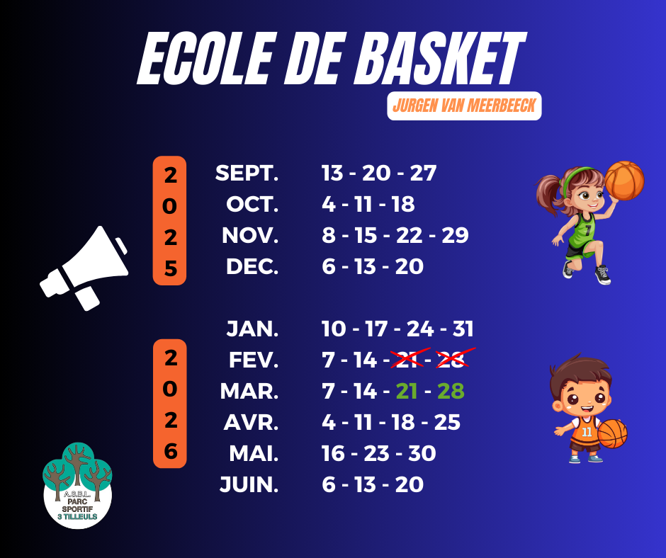 🏀 Les inscriptions seront prochainement en ligne!!!! Lien vers la plateforme iClub/My3Tilleuls 🏀