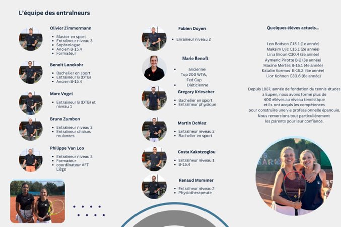 Collaboration entre l'école Pater Damian d'Eupen et le Royal Tennis Club d'Eupen, et ce depuis septembre 1987.
