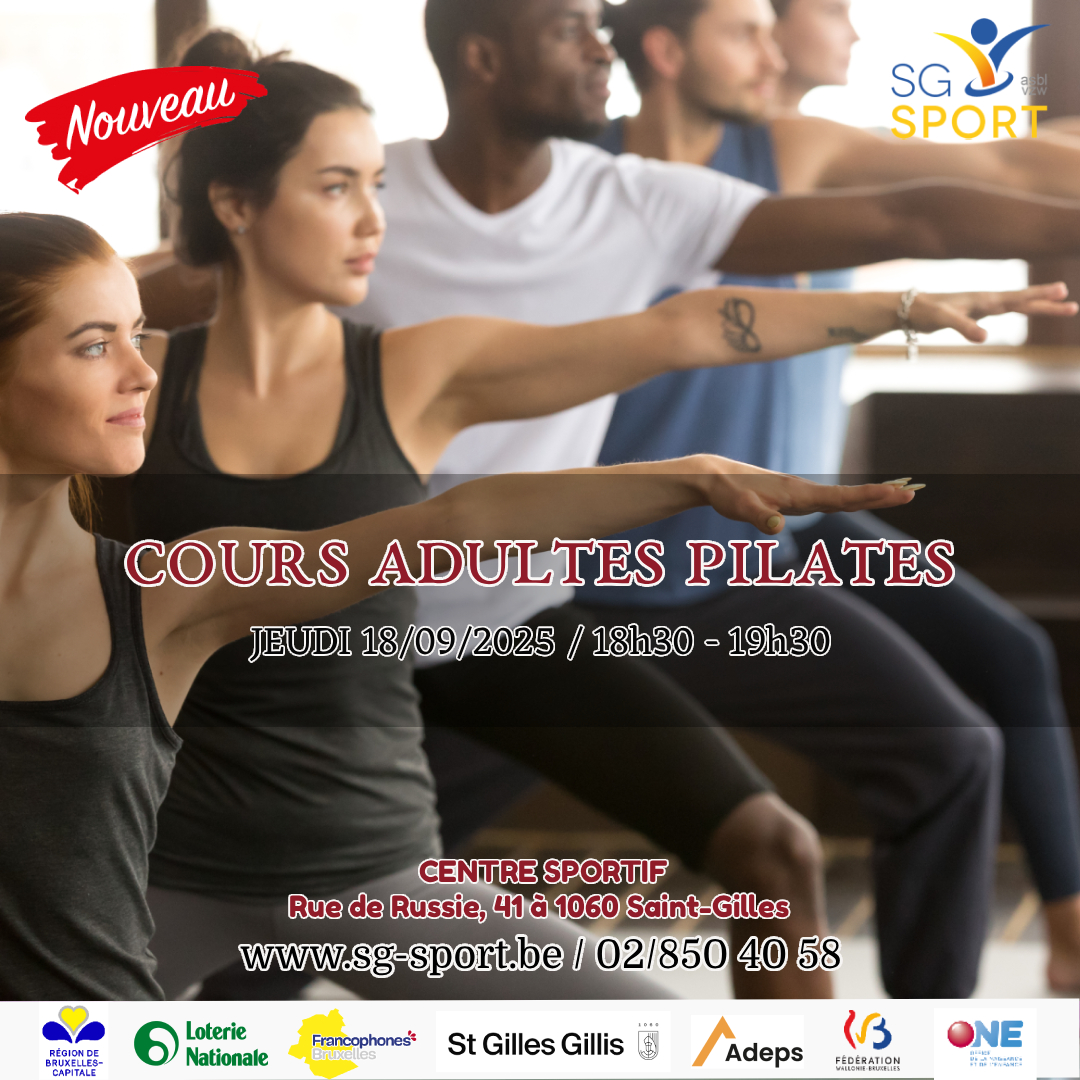 À partir de 18 septembre, une nouvelle activité "cours adultes" de Pilates sera proposée par Saint-Gilles Sport. Chaque jeudi de 18h30 à 19h30 !!!