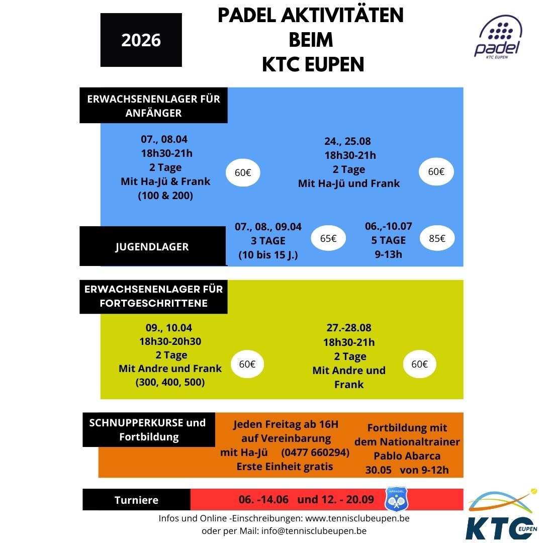 Der Verein organisiert sämtliche Padelaktivitäten im Laufe des Jahres. Mehr Information: